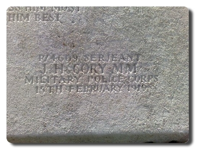 | Notes: | MMP. From Forest Hill. Later L/Cpl A.Sgt. Died, (Pneumonia). He was born in Wandsworth 1884, enlisted in New Cross and resided at 84 Malham Road, Forest Hill. Formerly A/Sgt 6 Dragoon Guards, No. 5396. Awarded the 1914 Star, Victory and War Medals. First served abroad (1) France, 14/8/14. 1914 Star on a separate medal card with MMP No. 11842 and DG No.5363. Next of Kin, Mrs P Cory (Widow), 84 Malham Road, Forest Hill, SE23. Info from Army Register of Soldiers' Effects, 1901-1929. Shown as died whilst on Furlough in Forest Hill, London. 18/10/1919 his widow Martha received £10-01-08 and on 27/11/1919 a further £18-8-04 including £29 war gratuity. A 2nd entry shows 18/10/1919 widow Martha received £4-00-06.Info from Pension Index Card:- Cory, John Henry, No.P/4609, MMP, Sgt, 15/2/1919 died from influenza whilst on active service. Widow Martha Emily Cory, 24 Malham Road, Forest Hill, London SE. They had 2 x children Emily Florence born 19/2/1914 and Lottie Patricia born 5/7/1919. Widow received £6 grant on 26/4/1919 and 25/11d per week 18/8/1919 pension.John Henry Cory.Extract from the Brockley News, new Cross and Hatcham Review 26 July 1919. FRENCH HONOURS FOR LOCAL MEN. The French Government has conferred the Medaille d'Honneur upon Lance Corporal (A/Sgt), J. H. Coy (should read Cory), Military Mounted Police, Forest Hill. |