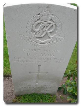 | Notes: | CMP. He was born and resided in Berkshire and formerly served in the Royal Berkshire Regiment. Casualty List 1627/12, Western Europe, Killed in Action, 24/11/1944. 11/4/49 he was awarded the 1939-1945 Star, France & Germany Star, Defence & War Medals.Address:- not shown.Inscription on gravestone:- God has his reward for quality of life rather that quality of years.Donald Harry Amor. |