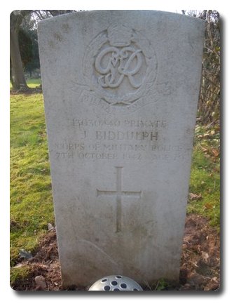 | Notes: | CMP. Enlisted in the Pioneer Corps, transferred to CMP. VP Eastern Comd. 7/10/42 Died. He was born and resided in Stoke-0n-Trent. His name is spelt Riddulph in Army Roll of Honour. No inscription on gravestone. Casualty List 960/22, Home, Died as a result of an accident, 6/10/1942. 5/10/49 He was awarded the War Medal.Address:- Mrs E Biddulph, 1 Hedley Place, Poolfields, Newcastle, StaffsJoseph Biddulph. |