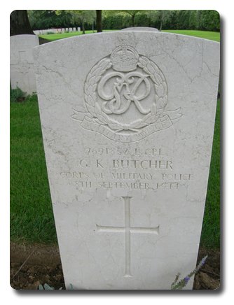 | Notes: | CMP. Enlisted in to CMP. He was born in Shropshire and resided in Bristol. No. shown as 76891862 in soldiers died. Casualty List 1558/15, Italy, Died as a result of an accident, 8/9/1944. No inscription on gravestone.26/7/48 He was awarded the 1939-45 Star, Africa Star with 1 army clasp, Italy Star, War Medal.Address:- not shown. Grenville Kitchener Butcher. |