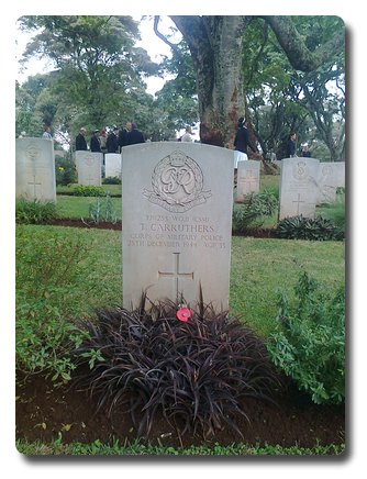 | Notes: | CMP. 11/2/1928 he enlisted in the Royal Artillery at South Shields for 3/9 years, born 22/9/1090 at South Shields occupation Miner, 10/2/1931 to Army Reserve 11/12/1939 transferred to CMP. Casualty List 1649/1, East Africa, Died as a result of an accident, 28/12/1944, unit 34 (East African) Military Prison & Detention Barracks. Medal card not found.He was born and resided in South Shields. Thomas Carruthers. |