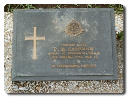 | Notes: | CMP. POW. Enlisted in to CMP. 18 Div Pro Coy. He was born in Nottinghamshire and resided in London N. Captured Singapore 15/2/1942. Died from tropical ulcers 9/8/1943 at Sonkrai, Thailand. Wife's address: Mrs D l Casburn, 4 Densworth Grove, Edmonton, London NW9.Info from Japanese POW index card: Phillip Montague Casburn. Born 24/2/1911 at Balderton, Newark on Trent, occupation Butcher, home address as above, father Montague, mother Catherine.He is listed on British POW's held in Japan or Japanese occupied territory: 8371, Casburn, Phillip M, L/Cpl, 7690231, Army, captured 15/2/1942, died 9/8/9143, camp MA, Malaya, (Thailand). deceased. He is listed on Burial Register No. 2 POW Camp, Sonkrai: 364, 7690231, L/Cpl, Casburn, P, CMP, row 4 grave 5. He is named on Unreported Deaths of Allied Prisoners: Casburn, Phillip Montague, L/Cpl, 7690231, tropical ulcers 9/8/1943. He is listed on roll of Kami Sankuri Camp No.1, CMP. died 9/8/1943, 18 Div Pro Coy.Casualty List 793/19, Malaya, Missing, 15/2/1942. Casualty List 1126/21, Malaya previously reported missing now reported POW, previous List 793, 15/2/1942. Casualty List 1934/12, previously reported POW now reported Died date of death 9/8/1943, previous List 1126, Malaya.26/7/48 He was awarded the 1939-45 Star, Pacific Star, War Medal. Address:- Not shown.Philip Montague Casburn. |