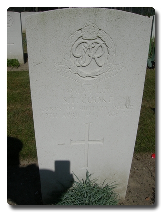 | Notes: | CMP. Enlisted in the General Service Corps, transferred to CMP. He was born and resided in Coventry. 110 Pro Coy War Diary WO 171/7822. 5/4/1945 Kellen, Ladbergen and Schmedehause bridge, L/Cpl Cooke, 8 Section was killed in an accident on the canal bridge at GR 960026. Casualty List not found. 26/7/48 He was awarded the 1939-45 Star, France & Germany Star, War Medal. No inscription on gravestone.Sidney Thomas Cooke.Police Review, 11/5/1945, page 231. Roll of honour. Formerly a member of the Coventry City Force, L/Cpl Sidney Thomas Cooke, of the Military Police has been killed in North West Europe. |