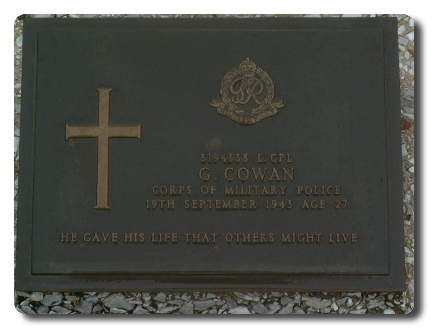 | Notes: | CMP. POW. 18 Div Pro Coy. Enlisted in the Kings Own Scottish Borderer's. 12/1/41 Transferred to CMP. 19/9/43 Died. He was born and resided in Roxburghshire. Captured Singapore 15/2/1942. Died from Tropical Ulcers 19/9/1942 Tambya, Burma. Home address: 11 Earl Street, Hawick, Roxburghshire.Info from Japanese POW index card: George Cowan. Born 3/6/1916 at Hawick, Scotland, occupation Builder, home address: Alice Cowan, 11 Earl Street, Hawick , Scotland, father William, mother Esther.Named on British POW's held in Japan or Japanese occupied territory: 11309, Cowan, George, L/Cpl, 3194338, Army, captured 15/2/1942, Died 19/2/1943, camp MA, Malaya, (Thailand). deceased. he is named on "F" Force Working Party Roll, Thailand: 3194338, L/Cpl, Cowan G, CMP 18 Div Pro Coy, died 19/9/1943. Casualty List 793/19, Malaya, Missing, 15/2/1942. Casualty List 1126/21, Malaya previously reported missing now reported POW, previous List 793, 15/2/1942. Casualty List 1930/14, POW, previously reported POW now reported died, date died 19/9/1943, previous List 1126, Malaya.7/9/49 He was awarded the 1939-1945 Star, Pacific Star, War Medal.Address:- Mrs A H Cowan, 11 Earl Street, Hawick, Roxburgshire, Scotland.George Cowan. |