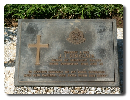 | Notes: | CMP. POW. Enlisted in to CMP. 18 Div Pro Coy. He was born in Stirlingshire and resided in Glasgow. Captured Singapore 15/2/1942. Died of dysentery and Beri Beri 13/12/1943 at Tambaya, Burma, grave No. 743. Home Address: Mrs E M Sinclair, c/o Sneddon, 114 South Street, Aradale. West Lothian.Info from Japanese POW index card: James Ireland Sinclair, 12/10/1910 born Polmont, Stirlingshjire, address: Mrs Maggie Sinclair, 114 South Street, Armadale, Scotland, occupation Insurance Agent, father Alexander Ireland, mother Maggie.He is listed on British POW's held in Japan and Japanese Occupied Territory: 45933, Sinclair, James Ireland, L/cpl, 7689857, Army, captured 15/2/1942, died 30/12/1943. He is listed on POW transferred Overland to camps, 4/1943, Force "F" Work Party. He is mentioned on Death Certificate: Sinclai5r, James Ireland, Cpl, 7689857, 1/1/1944 died from dysentery and Beri Beri, he was buried.Casualty List 792/9, Malaya, Missing, 15/2/1942. Casualty List 1160/10, Malaya previously posted missing now reported POW, previous List 792, 15/2/1942. Casualty List 1924/12, POW, previous reported POW now reported Died, 30/12/1943, previous List 1160, Malaya.9/7/49 He was awarded the 1939-1945 Star, Pacific Star, War Medal.Address:- Not shown.John Ireland Sinclair. |