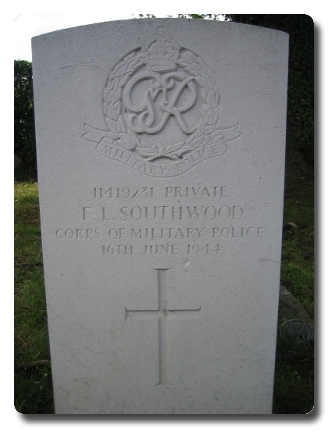| Notes: | CMP. Enlisted in the Royal Artillery, LAA Branch, transferred to CMP. VP. 16/6/44 Died. He was born in Devonshire and resided in Hampshire at 6 Peabody Road, Farnborough. Unit War Diary HQ CMP Ports. WO 166/16277. 16/6/44 Casualties. 1419231 Pte F L Southwood CMP (VP) 176 attached 193 Coy Ports killed in air raid at King George V Docks, London E 16. 722166 Pte J Mitchell VP CMP 177 (attached 193) Coy Ports seriously injured at the same time. (Died later). Casualty List 1483/29, Home, Killed in Action, 16/4/1944.Casualty List 1490/35, Home, Killed in Action, army No. should read, 11419231.20/9/49 He was awarded the Defence Medal, War Medal.Address:- Mrs D I Southwood, 6 Peabody Road, South Farnborough, Hants.No inscription on gravestone.Frederick Leslie Southwood. |