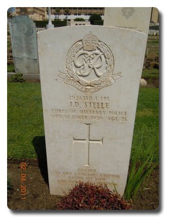 | Notes: | CMP. Enlisted in the Cameron Highlanders, transferred to CMP. 9/10/39 Died. He was born in West Lothian and resided in Edinburgh. Inscription on gravestone: Father in thy gracious keeping, leave we now our loved one sleeping. Casualty List No. 60/1 (other ranks) Egypt, died, 9/10/39.Medal card not found.James Devlin Steele.Newcastle Journal 31/1/40, War Office Casualty List of Officers and Men who have Died up to 31/12/1939. Steele L/Cpl J D. |