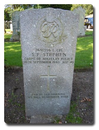 | Notes: | CMP. He was born and resided in Aberdeen and enlisted in to CMP. Casualty List 953/26. Home, Died as a result of an accident., 28/9/42.Medal card not found.Inscription on gravestone: And in the morning we will remember thee. Samuel Fraser Stephen. |