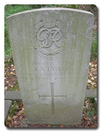 | Notes: | CMP. He was born and resided in York and enlisted in to CMP. Inscription on gravestone: At Rest a CWGC stone in a family plot. Casualty List 357/9, Home, Died, 4/11/40. No. 6784095.Casualty List 576/19, List 357, Home, Died, No. should read 768409520/9/49 He was awarded the 1939-1945 Star, War Medal.Address:- Mrs E M Roberts, 7 West View, Wyndham Street, Hull, East Yorks.Joseph Arthur Taylor. |