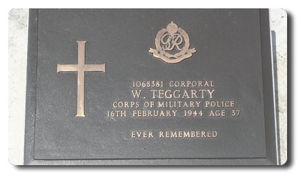 | Notes: | CMP. 1/6/1926 he enlisted in the Royal Artillery fir6/6 years at Belfast, occupation House Painter, born Kilkeel, Co. Down, 9/1/1932 transferred to CMP. Captured 25/12/1941, Hong Kong. Died from Cardiac Beri Beri, Cremated.Info from Japanese POW Index Card: Teggarty, William, born 26/12/1905, Cpl, No. 1068381, CMP, captured 25/12/1941, from Kilkeel, Co. down, Ireland. Address: Mrs H Teggarty, 18 Porter Street, Haverley, Sydney, Australia. Mothers name Mary.He is listed on British POW's held in Japan or Japanese Occupied Territory: 49743. Teggarty, William, Cpl, 1068381, Army, captured 26/12/1941, died 16/2/1944, camp OS, Osaka. He is listed on British POW who died of illness or aerial bombardment: 41. Cpl, William Teggarty, 1068381, died 16/2/1944 from Beri Beri he was cremated. He is listed on Oeyama POW Camp, Osaka Camp III, nominal roll of deceased, 31/8/1945, Cremated.Casualty List 718/10, Hong Kong, Missing, 25/12/1941. Casualty List 872/18, Hong Kong, now POW previously reported as Missing on List 718, 25/12/1941. Casualty List 1160/15, Hong Kong, POW previously reported as Missing on list 718, 25/12/1941. Casualty List 1260/15, corrections, Hong Kong, List 873, POW previously reported Missing on list 718, 25/12/41, rank A/Cpl. Casualty List 1758/27, previously reported POW in Japanese hands now reported Died 28/2/1944, previous List 873 corrected by 1260, Hong Kong.Medal card not found.William Teggarty. |