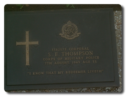 | Notes: | CMP. POW. Enlisted in the East Lancashire Regiment, 3/8/40 Transferred to CMP. 18 Div Pro Coy. 7/8/43 Died. He was born and resided in Belfast. Captured as Singapore 15/2/1942. Died from diarrhoea 7/8/1943 at Sonkrai, Thailand. Home address: Mrs R Thompson, 27 Cumberland Street, Belfast. Info from Japanese POW index card: Samuel Edgar Thompson, 27/7/1907 born Belfast, Northern Ireland, address: Mrs Rebecca Thompson, 27 Cumberland Street, Belfast. occupation Clerk, mother Rebecca. He is listed on British POW's held in Japan and Japanese Occupied Territory: 50197, Thomson, Samuel E, Cpl, 3382573, Army, captured 15/2/1942, died 7/8/1943, Camp MA, Malaya, deceased. He is listed on Malaya POW Camp Roll: Thomson, Samuel Edgar, Army, Cpl, new POW No. IV 10548, old POW No. i/6135, 3382573, 7/8/15. He is listed on the Sonkrai POW Camp List: 3387573, Cpl Thompson, S E, CMP 18 Div, died 7/8/1943/He is listed on the Thailand Burma Railway Camps death register, "F" & "H" Force: 81. 3382573, Thomson, S E, Cpl, 18 Div Pro Coy, died 7/8/1942 from Diarrhea, buried in Cemetery II, Block A, Row 2G5, Thailand, Force "F".Casualty List 792/9, Malaya, Missing, 15/2/1942. Casualty List 1156/13, Malaya, previously reported Missing now reported POW, previous List 792, 15/2/1942. Casualty List 1659/21, POW, previously reported POW in Japanese hands now reported died, date of death 7/8/1943, previous List 1156 corrected by 1160, Malaya.22/11/48 He was awarded the 1939-1945 Star, Pacific Star, War Medal.Address:- Not shown.Samuel Edgar Thompson. |