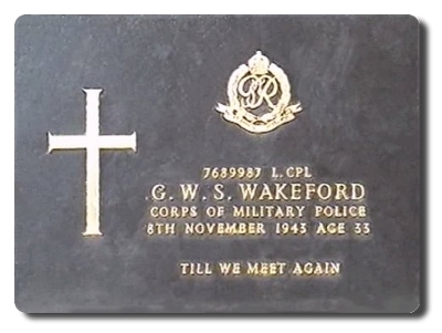 | Notes: | CMP. POW. 18 Div Pro Coy. He was born in Sussex and resided in Brighton. Captured Singapore 15/2/1942. Died from post dyoenteric incognition 8/11/1943 at H Hospital, Thailand. Home address: Mrs W Wakeford, 339 Burgess Road, Bassett, Southampton.Info from Japanese POW index card: Stanley Wakeford, 5/9/1910 born Little Hampton, Sussex, address: Winifred Wakeford, 19 Perth Road, St Leonards on Sea, Sussex, occupation Furnishing Manager, father William George, mother Jennie Winifred.He is listed on British POW's held in Japan and Japanese Occupied Territory: 52048, Wakeford, Stanley, L/Cpl, 7689987, Army, captured 15/2/1942, died 8/11/1943, camp TH, Thailand. He is listed on Malaya POW Camp Roll: Wakeford, Stanley, Army, L/Cpl, new POW No. V 10894, old POW No. i/6314, 7689987, 8/11/? He is listed in Force "H" & "F" Death Register: 81. 7689987, Wakeford, G, L/Cpl, Provost Corps 18 Division, died 18/11/1943 from dysentery, grave 267, No.2 Cemetery Kanburi, H Hospital, Thailand, Force "H".Casualty List 792/9, Malaya, Missing, 15/2/1942. Casualty List 1166/10, Malaya, previously reported missing now reported POW, previous List 792, 15/2/19042. Casualty List 1950/10, POW, previously reported POW now reported Died, 8/11/1943, previous List 1166, Malaya.Medal card not found.Inscription on gravestone:- Till we meet again.Guy William Stanley Wakeford. |