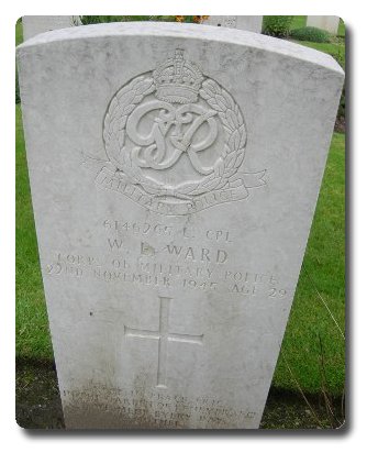 | Notes: | CMP. He was born and resided in London North and formerly served in the East Surrey Regt. War Diary WO 171/7788. 25 Company Traffic Control. 22/11/1945. L/Cpl Ward found dead, Cologne SIB investigating. Found drowned with excessive injuries caused by persons unknown. 26/11/1945 buried in Guards Div Cemetery. Cologne. War Diary WO 171/10763. 25 Coy (TC), 3/6/1946 OC Capt. Barry, Pioneer Corps Witness at trial of civilians re murder of L/Cpl. Ward. War Diary WO 171/7814. 87 Section SIB. Cologne 22/11/45. A L/Cpl of Traffic Control, CMP Cologne, was found murdered on the 22 November 1945, and investigations initiated by this Section have resulted in the arrest of the two perpetrators and eleven others for being accessories after the fact. All thirteen are German. Casualty List 1931/2, Western Europe, Died, 22/11/1945.Medal card not found.Inscription on gravestone: Rest in peace Eric in the garden of remembrance, we meet every day. Mother.William Eric Ward.Extract from Motherwell Times 25/1/1946.GRIM JOB IN COLOGNE - Murderers watched by Scots Guards. Two Scots Guardsmen who in Cologne recently had the unenviable job of guarding three German murderers were present at the dramatic court room scene when a Military Court judge pronounced sentence of death upon the three men for the brutal killing of a British CMP last November, writes a military observer. Gdsm. William Thompson whose home is 26 Church Place, Grahamston, Falkirk, and Gdsm. Tom Mark of 324 High Street, Newarthill, had to sit watchfully by the side of the dock with rifles and bayonets in case either the prisoners or their many relatives in the crowded court should cause a disturbance. Seven other Germans, charged with assisting in an failing to report the murder, also had to be watched and eventually received from one to five years imprisonment. At the conclusion of the case the three murderers were hurried into a waiting van while a cordon of German police kept back the crowd. The Guardsmen went with them to deliver them safely to Klingelputs goal. Once the scene of Nazi atrocities. |