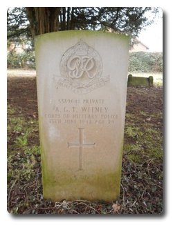 | Notes: | CMP. 24/6/40 enlisted in the Ox & Bucks Light Infantry, 25/1/41 transferred to CMP. TC. 13/6/42 Died. He was born and resided in Buckinghamshire. No inscription on gravestone. Died as a result of an accident. Casualty List 859/2, Home, died result of accident, 13/6/42.7/9/49 He was awarded the Defence Medal, War Medal.Address:- Mrs M Strange, 6 Jubilee Road, Stokenchurch, Bucks.No inscription on gravestone.Arthur George Thomas Witney. |