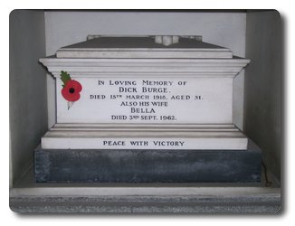 | Notes: | MFP. He was born in Cheltenham, enlisted in Camberwell and resided in Golders Green, Died. Formerly 21 London Regiment, No. 3832 and No. 651419. Age 51. Died at London from Pneumonia. Info from Army Record: Enlisted in the 21 London Regiment, 15/5/15, transferred to MFP 31/8/17 for duties in London District. Died 15/3/18 at 11 Osborne Mansions, Northumberland Street, London from Pneumonia and Syncope whilst serving in London District. Home address: Newark, Finchley Road, Golders Green London. Pre war occupation Boxing Promoter. See phtlr:// blackcablondon.net/tag/dick-burge/ for details of his life.Info from Army Register of Soldiers' Effects 1901-1929. 15/3/1918 Died. 29/11/1915 he left the sum of £6-09-05, + £10-15-00 war gratuity.Info from Pension Index Cards: Burge, Richard, No. P/12229, MFP, A/Sgt, 15/3/1918 died from pneumonia and syncope. Widow Leah Belle, born 29/9/1877, address 11 Osborne Mansions, Northumberland Street London. 26/3/1918 widow given £5 grant, 23/9/1818 she received a pension of 16/3d per week.Richard Burge.Extract from the Daily Mirror, 20/3/1918. THE KING AND QUEEN HAVE SENT A MESSAGE TO MRS BURGE.About 4,000 people were present at the funeral of the famous boxer. The King and Queen have sent a message to Mrs Burge sympathising with her in her bereavement. About 4,000 people attended the funeral with military honours of the late Sergeant Dick Burge of Golders Green yesterday. Following the coffin Mr Tom MacNaughton let the sergeant's favourite dog, Betty. An escort of fifteen men was provided by Burge's late comrades of the Military Foot Police. The mourners included The Duke of Manchester, the Marquis of Queensberry, Mr Joe Elvin, Miss Marie Lloyd, Chief Inspector McBride, Lieutenants Percy Alben and E Wheatley (the well-known jockeys.) Professor Newton, Mr Ben Tillett, Mr Frank Matthew (representing the National Sporting Club), and Mr Eugene Corris. About 250 wreaths were sent. |