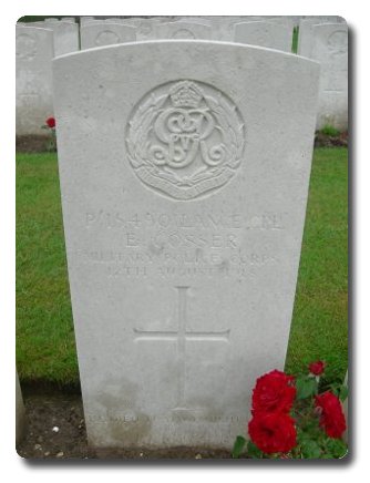 | Notes: | MFP. Awarded the Victory and War Medals. First served abroad (1) France, 19/1/16 to 5/7/16 and 17/2/17 to 12/8/18. He was born, resided and enlisted in Ashington. Died. Formerly Pte. 22 Tyneside Scottish. No. 22/110 and 10 Northumberland Fusiliers. Inscription on gravestone: He died that we might live. Medal card annotated: Application for medals by wife Mrs Mary Cosser. 21/6/1921. Home address: Kelham, Mindrum, Northumberland. Accidentally drowned at Berck Plage, Nr Etaples, France. Info from Pension Index Card:- Cosser, Edward, No. P/15490, L/Cpl, MFP, 12/8/1918 Died, Widow May Cosser, 130 Sycamore Street, Ashington, Northumberland. Children Mary Duncan born 3/5/1903, date of expiry 3/5/1919, Dolcis born 12/8/1904, date of expiry 12/8/1920. 2/9/1918 £7 grant paid. 24/2/1919 Family received a pension of 34/6 d per week. Also: 2/APW/2943. Cosser, Mary (E) 130 Sycamore Street, Ashington, MFP, L/Cpl, P/15490Info from Army Register of Soldiers Effects 1901-1929. 6/11/1918 he left the sum of £16/01/00 to his widow Mary, 10/12/1919 she received £17/10/00 war gratuity.Edward Cosser. |