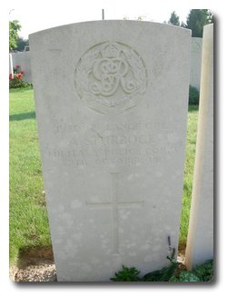 | Notes: | MFP. Awarded the Victory and War Medals. First served abroad (1) France, 2/7/1916 to 27/10/1918. Died. He was born in Carmyllie, enlisted and resided in Arbroath. No inscription on gravestone. Enlisted 3/12/1915 at Arbroath, age 32. Home address 11 Duke Street, Arbroath. He formerly served with Arbroath Borough Police. Served Home 3/12/1915, Army Reserve 4/12/1915 to 11/5/1916, Home 12/5/1916 to 1/7/1916, BEF2/7/1916 to 27/10/1918. Arrived Havre 3/7/1916 on SS King Edward, to Rouen GBD 4/7/1916, APM Abbeville 23/7/1916, APM L of C 4 Army Railhead area Abbeville 25/7/1916, 5 Section Railhead, Albert 9/12/1916, 5 Army Albert 10/6/1917, 3 Army Albert 20/12/1917, 5 Army 21/2/1918, 4 Army 20/10/1918. Admitted to 53 CCS, influenza, died 27/10/1918 Bronco Pneumonia.Info from Army Register of Soldiers' Effects, 1901-1929. 27/10/1918 died from illness. 10/4/1919 his widow Helen received £20-19-00 and 10/12/1919 £11 war gratuity.Info from Pension Index Cards: Sturrock, Alexander, No. P/'3097, MFP, L/Cpl. 27/10/1918 died from Bronco Pneumonia. France. Widow Helen Stephen, born 26/10/1884, address 11 Duke Street, Arbroath, Scotland. They had 3 children Charles Smith born 14/9/1912, Alexander born 23/3/1914and Ronald Adamson born 23/8/1918. 12/11/1918 widow paid £8 grant, 12/5/1919 she received 29/7d per week pension.Info from Scotland Roll of Honour 1914-18. L/Cpl Alexander Sturrock, MFP, 9 Duke Street, Arbroath, was the son of Alexander Sturrock and of his wife Margaret Tough, Carmyllie. He was thirty five years of age, had married Nellie Smith, and left three sons. He was at one time a farm servant at East Seaton, but joined the Arbroath Burgh Police Force in 1908. H4e enlisted in the Military Foot Police in May 1916 and went to France Shortly afterwards. He was due home on leave when he had a very severe attack of influenza, followed by pneumonia and died in a hospital in France on the 27th of October 1918. L/Cpl Sturrock was one of seven Arbroath policemen who joined the colours, and was the second to die on service.(above has a head and shoulders picture of L/Cpl Sturrock in MFP uniform.)Alexander Sturrock |