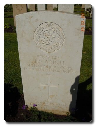 | Notes: | MMP. Awarded the Victory and War Medals. First served abroad (3) Egypt, 23/11/17 to 17/12/18. Formerly Gnr Royal Field Artillery. No. 2167 (not shown on medal card). Died Nasrieh Military Hospital, Cairo, Army Register of Soldiers' Effects, 1901-1929, Inscription on gravestone: Peace perfect peace with loved ones far away. He was born in Sizland, Norfolk, enlisted in Norwich and resided in Berg Apton. Found in other documents: Casualty List (part). MMP, Died of Broncho Pneumonia, 17/12/1918, P/7989, Wright, L/Cpl. J R.Info from Pension Index Cards:- SB36-W. WIDOWS. W/76. Surname of Guardian: Ashfield, F, Surname of man: Wright, James R, MMP. P/7987, Cringleford, Norwich, Norfolk. Also:- CLAIMANT. MPW5. 11/w/26376. Ashfield, Frances, Man's name: Wright, James, R, P/7987, MMP, relationship to man guardian of child, Charles. Also:- W1. Wright, James Robert, P/7987, MMP, A/L/Cpl, date of notification of death 22/12/18 & 26/5/19, 11/W/26376, Guardian: William Ashfield, Hall Cottages, Cringleford, Norwich, Norfolk, Mrs Francis, Guardian of child Charles 5/8/29, Children: Charles William born 3/5/10, Frances Vera, born 30/3/15, 23/6/19 awarded pension of 19/2 per week. 1931, DEAD JJ/33321. Also:- Ashfield, William (guardian), 11/W/2637, Hall Cottage, Cringleford, Norwich, Norfolk, 8/1/29. P/7987, A/L/Cpl, James R Wright, MMP.James Robert Wright. |