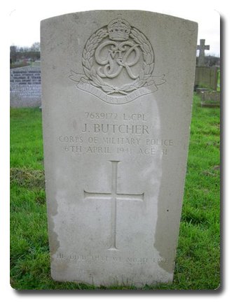 | Notes: | CMP. Enlisted in to CMP. He was born in Yorkshire and resided in Preston. Casualty List 490/8, Home, died as a result of an accident, 6/4/1941. 9/9/49 He was awarded the Defence Medal, War Medal.Address:- Mrs EButcher, 50 Lindon Road, Blackpool, Lancs.Inscription on gravestone: He died that we might live.John Butcher. |