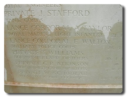 | Notes: | MFP. Not listed in Soldiers Died. Commemorated on screen wall, buried in Newcastle upon Tyne (Westgate Hill) General Cemetery. Medal Card not found. Medal Card for P/17268 L/Cpl R Walton MFP, formerly Pte West Yorkshire Regiment, No. 28005, awarded the Victory and War Medals, could be same man. |