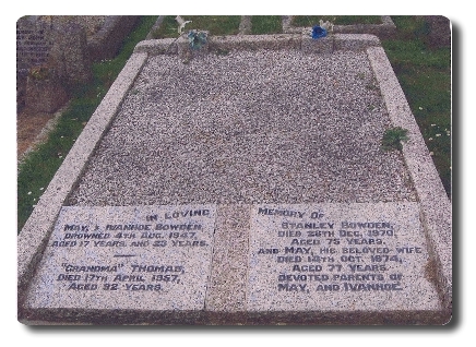 | Notes: | RMP. He was drowned whilst trying (unsuccessfully) to rescue his sister May, aged 17 years. (info from T Guilfoyle). No inscription on gravestone. Michael Ivanhoe Bowden |