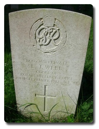 | Notes: | CMP/RMP. He formerly served in the Royal Artillery., 11/8/1941 transferred to Pioneer Corps, later transferred to CMP.Medal card not found. No inscription on gravestone. He is also listed on the memorial to the missing in Brookwood Military Cemetery, Surrey. Edwin James Webb. |
