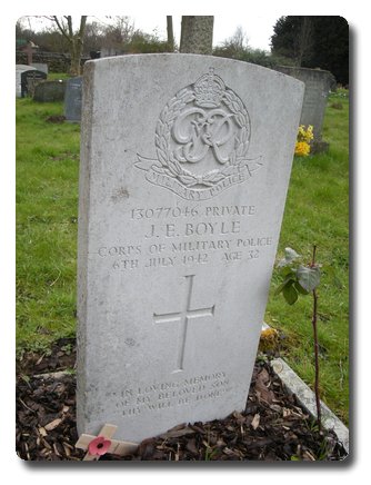 | Notes: | CMP. Formerly Auxiliary Military Pioneer Corps. 21/7/41 Transferred to CMP. VP. 20/5/42 Discharged. 6/7/42 Died. Not listed in Crozier Roll or Army Roll of Honour. No Casualty List found.John Emerson Boyle. |