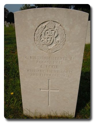| Notes: | MFP. Awarded the 1914 Star with clasp (6528) and rose, Victory and War Medals. First served abroad (1) France, 10/10/1914 to 21/11/1914 and (2b) Gallipoli, 24/10/1915 to 4/2/1916 and (3) Egypt, 5/2/1916. Not listed in soldiers died. Served under the name of C Cook, real name Bultitude. Formerly Pte.2 Suffolk Regt. No. 3/9210. and L/Cpl 1 Northamptonshire Regt. No. 21149. No inscription on gravestone. |