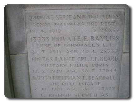 | Notes: | MFP. 12/2/1920 Died. Awarded the 1914 Star, Victory and War Medals. First served abroad (1) France, 22/8/1914 to 1/7/1916 and 17/8/1917. 18/7/1901 enlisted a Pte. 1 King's Royal Rifle Corps. No. 3942, age 19.2 years, occupation Labourer, From Saltley, Birmingham. Not listed in soldiers died. Address: absent voters list 1918, 58 Devon Street, Duddeston, Birmingham. Served Home 18/7/1901 to 15/7/1902, South Africa 16/7/1902 to 21/9/1902, Malta 22/9/1902 to 26/2/1905, Cyprus 27/2/1905 to 28/2/1906, Egypt 1/3/1906 to 12/2/1909, Home 13/2/1909 to 16/7/1909, A Army Reserve 17/7/1909 to 17/7/1913, B Army Reserve 18/7/1913 to 4/8/1914, Home 5/8/1914 to 11/8/1914, BEF 12/8/1914 to 21/1/1915, Home 21/1/1915 to 12/12/1915, BEF 15/12/1915 to 1/7/1916, Home 2/5/1916 to 16/8/1917, Italy 17/8/1917 to 26/4/1919, Home 27/4/1919 to 26/5/1919, A Reserve 27/5/1919. 1/10/1915 he sustained shrapnel wound to right thigh, list 1015. Address 58 Devon Street, Saltley, Birmingham.James Frank Beard. |