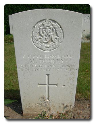 | Notes: | MFP. Awarded the 1915 Star, Victory and War Medals. First served abroad (1) France, 8/3/1915. Formerly Gnr. 112 Heavy Bty. Royal Garrison Artillery. No. 39244. Not listed in soldiers died. Inscription on gravestone: I shall go to him but he shall not return to me. From his sorrowing Mother. Died, Illness, Casualty Clearing Station, Cologne, Army Register of Soldiers' Effects, 1901-1929.Info from Pension Index Cards: Tooley, Michael, MFP, No. P/14241, Pte, 30/1/1920 Died, VDH and Nephritis. mother Annie Maria, 34 The Grove, Dorchester, age 54 years.Michael Tooley. |