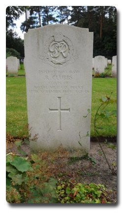 | Notes: | CMP. Died 12/11/1949. Enlisted in the Gordon Highlanders. 2/2/41 Transferred to CMP. 12/11/49 Died, Cause of death unknown. Age 39. Captured - 12th June - Escaped - 20th June 1940 Left Gibraltar - 19/10/40, Arrived GLASGOW 28.10.40. Home Address: Holly Bungalow, Sherborne Road, South Farnborough, Hampshire, Previous Service: Reservist 9 years. Peacetime Profession: Clerk. Grave Reference: Post War Plot Row E Grave 20. Born 9/9/1910. He has a medal card dated 27/6/90, Pte Gordon Highlanders no medals redacted. Robert Clubbs. |