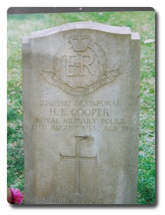 | Notes: | RMP. Died 19/8/1953. Died in a Road Traffic Accident, Canal road, Ismailia, Egypt. Age 19. Grave Reference: Plot 14 Row E Grave 9. Born 11/4/1934. Howard Edwin Cooper. |