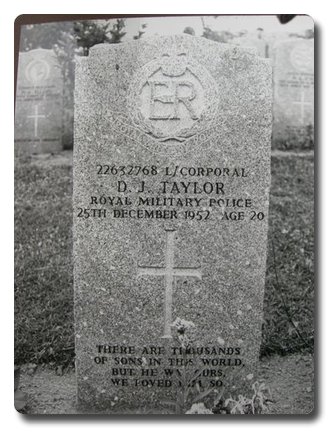 | Notes: | RMP. Died 25/12/1952. Cause of death traffic accident, Kluang in Johore State. Died with L/Cpl A D Roe both of 40 Div Pro Coy attached to 17 Gurkha Div Pro Coy. Age 20. Born 18/5/1932. Dennis James Taylor. |